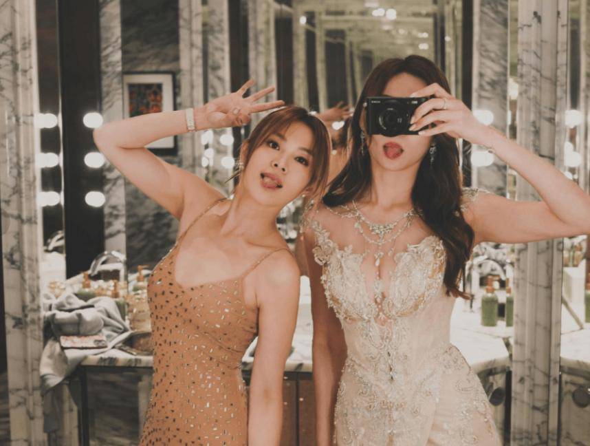 更吸睛的是,她还邀请现今41岁的2011年港姐梁丽翘一同出镜,二人互相倚靠合照,散发着浓浓的姐妹情。