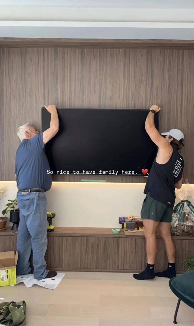 这两名仿佛是神仙一般的伴侣,最近在加拿大换了一套带有庄园的别墅。在装修过程中,男友的父亲亲自参与了其中,Mathew甚至在没有穿袜子的情况下,踏在地板上安装了电视。