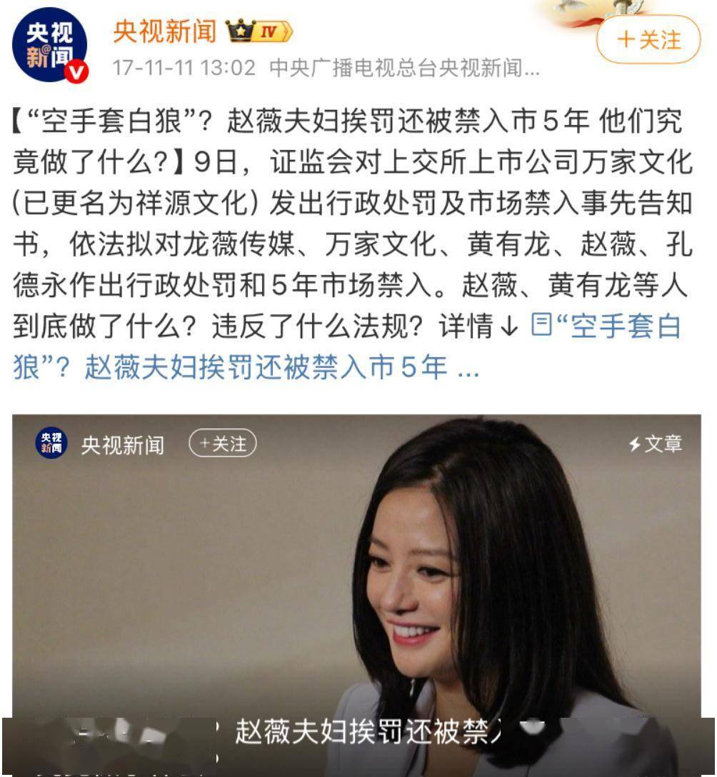 2016年,赵薇夫妇名下的龙薇传媒,计划通过向“明天系”旗下公司等渠道,融资合计30亿元,收购万家文化30%的股权,意图成为万家集团的实际控股人。消息一经放出,大批股民受赵薇名气加持,纷纷跟风买入万家文化股票,满心期待能跟着这位资本大佬赚一笔