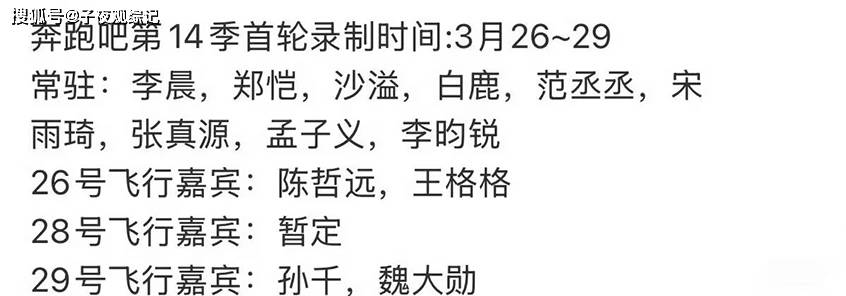 不过说实话,这次阵容有变化,我最在意的不是谁走了,而是谁留了下来,李晨和郑恺,这两个从第一季一直到第十四季的老相识,居然还在。