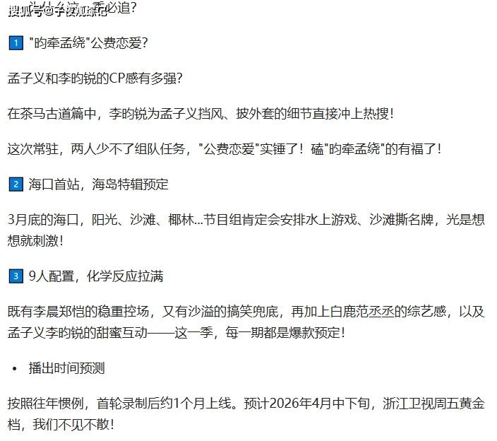 要是你想要那种确定的快乐,那李晨郑恺还在这里,要是你想要新鲜刺激,孟子义李昀锐会给你惊喜,要是你想要追更的仪式感,周深回来本身就是最大的悬念
