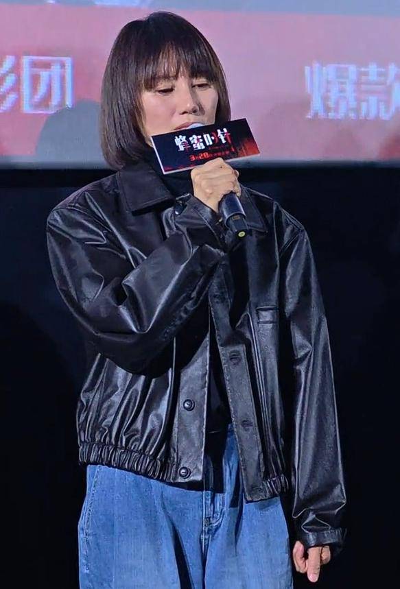 袁泉穿了一身黑色皮衣,搭配一条牛仔裤,只是那条裤子有些掉档,显得有些拉胯,没能撑起她的气场。