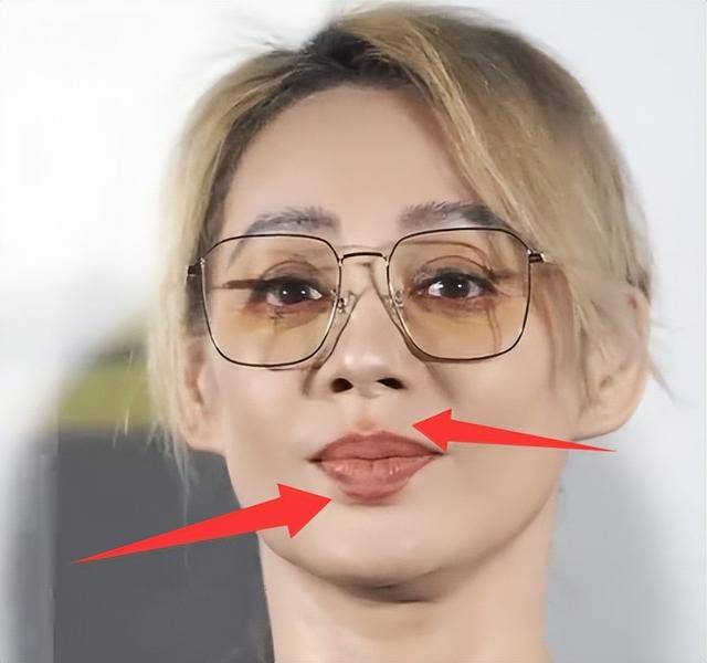 更显眼的是她的口红,涂得太满,直接溢出了唇线,蹭到了人中上,少了几分精致,多了几分随意,也让她的皮相美,少了些许底气。