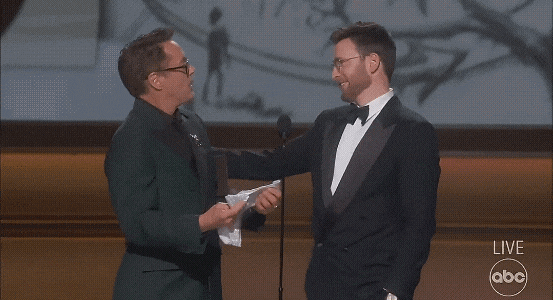 本届奥斯卡的欢乐瞬间,丝毫不亚于红毯时尚。最让全球影迷狂喜的,莫过于“钢铁侠”小罗伯特·唐尼与“美国队长”克里斯·埃文斯的世纪同框。两人从舞台后一起走出来时,全场瞬间沸腾,掌声雷动。