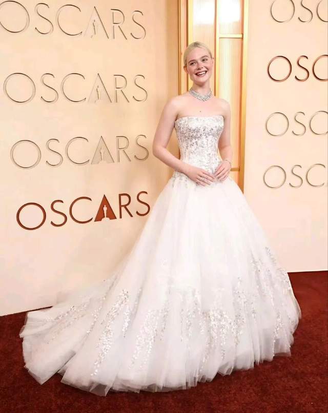 艾丽·范宁一登场,便成为红毯上的“纯白月光”。