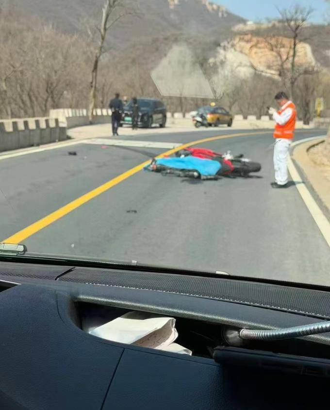 据知情的网友透露的现场情况:一辆红色的张雪820机车在道路中央倒下,车的零部件四散,车头和车身都被撞得面目全非,旁边的驾驶员被一块蓝色布料覆盖,这个人被称为“黄油腻”。