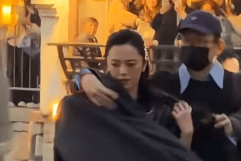 上岸时,工作人员给她披围巾也是冷脸,也没跟围观的路人们打招呼。