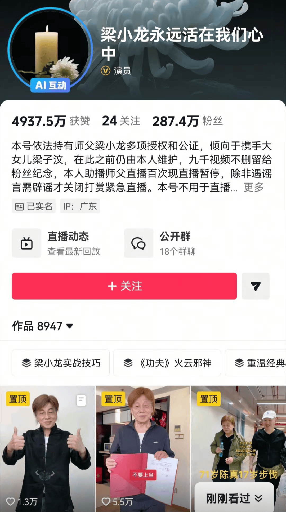 徒弟还指控师母“消费逝者”,在梁老师的287万粉丝账号上狂发75条私密视频,包括“给师父庆生但师父已去世”的尴尬内容。网友调侃:“师母这是要转型当‘阴间网红’吗?”