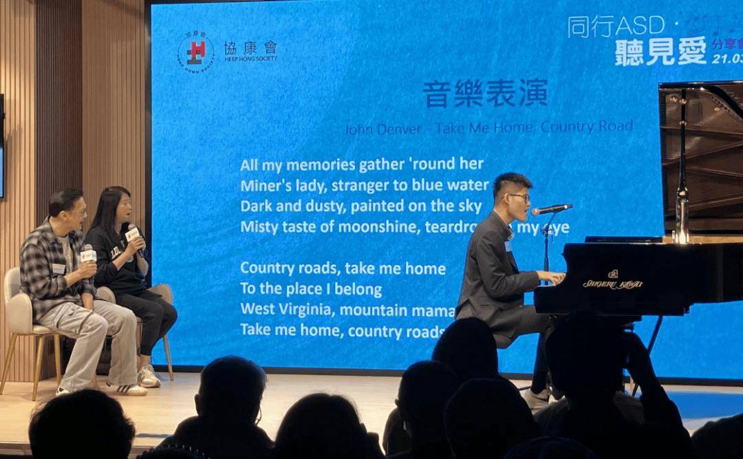 在问答环节中,他们又和现场观众互动交流。现年18 岁的陈驾桦用英文、德文及普通话自我介绍,展现出语言天分,他当场献奏肖邦的古典乐曲《升 C 小调波洛奈兹,作品 26 第 1 号》,展现多年的努力与成果,还自弹自唱了经典民歌《乡村路带我回家》,现场观众跟着音乐拍手合唱,场面温馨感人。