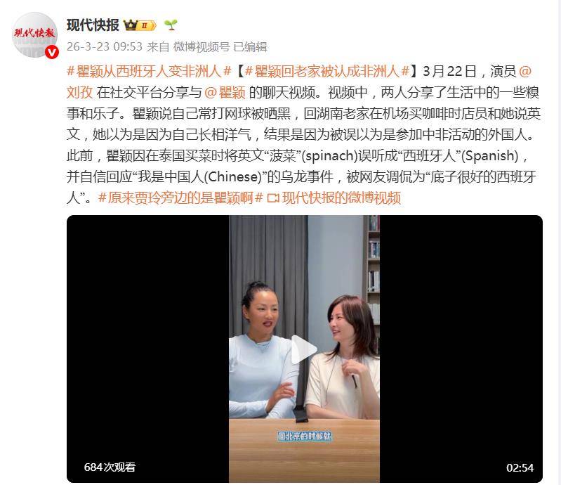 据3月23日报道,演员瞿颖又一次用她的“国际范儿”闹出了笑话,这次直接升级到了“洲际”水平。3月22日,瞿颖在社交平台分享的最新趣事,让网友笑称:这位姐的