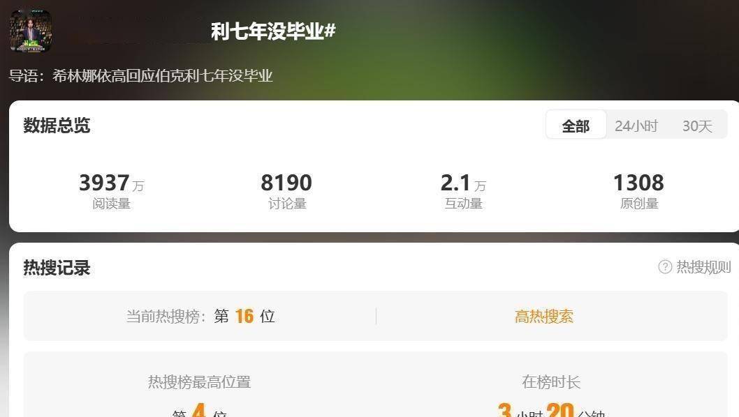 在另一档节目中,希林娜依·高坦言曾计划低调完成学业,因顾虑公众期待暂未公开进展,未料被意外曝光,自嘲是“悄悄努力型人格”。 她透露希望“偷偷摸摸毕业”,即避免公众关注压力,低调完成学业后直接呈现成果。