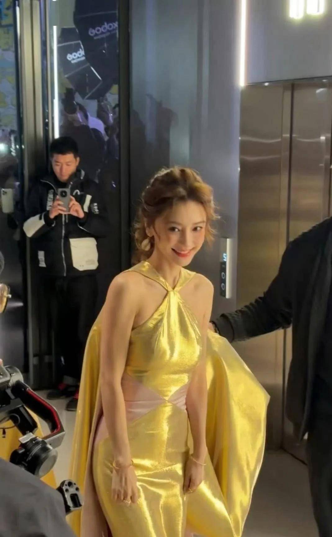 活动现场的杨颖穿着金色斜肩长裙,勾勒出优越的肩颈线条,长发披肩气质优雅。 远看依旧是那个惊艳全场的红毯定海神针,现场不少路人都忍不住驻足拍照。