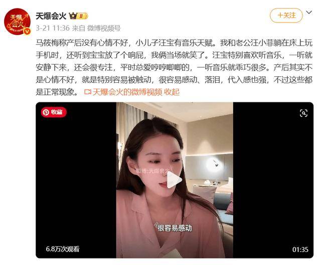 马筱梅还说最近很容易落泪,代入感很强烈,其实这些都是产后正常的生理反应,并非是网传说的那样自己有产后抑郁。