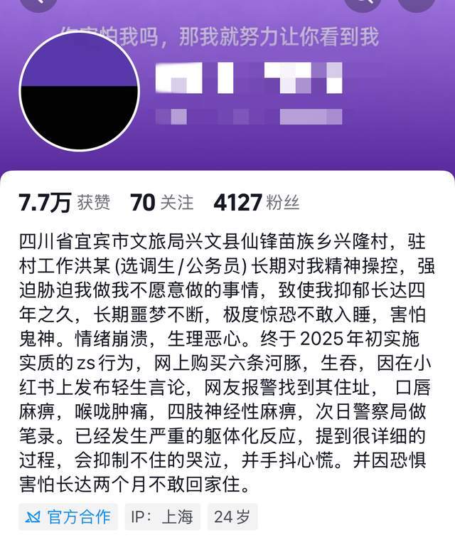 简介中,程冷潇这样写到:长期对我精神操控,强迫胁迫我做不愿意做的事情,致使我抑郁长达四年之久,长期噩梦不断,极度惊恐不敢入睡。