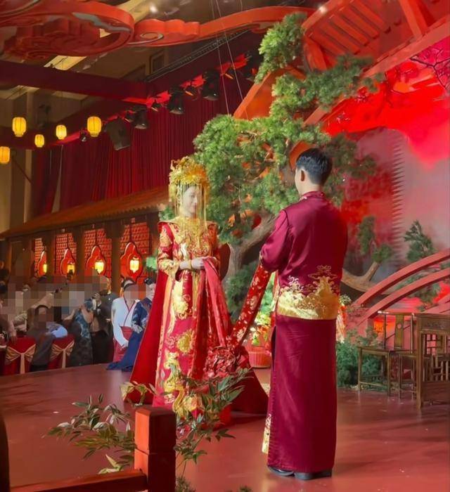 据悉,这场婚礼的男主角是化州知名企业家陈华伟的儿子陈智鸿,女主角Kat是一个博主,香港人,两人在伦敦相识,于今年1月在深圳举办了一场西式婚礼,这次则在男主角位于老家的酒店举办中式婚礼。两人同框,看起来十分登对。