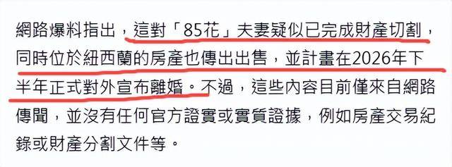 此次关于85花的离婚预言,只有短短两句话,并没有任何实质性证据证明真假,官方媒体也并未证实。