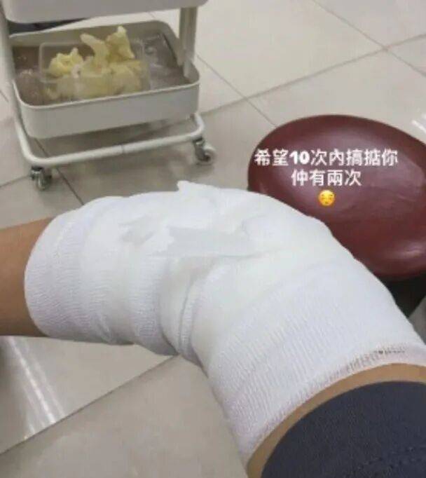 照片中发现诗咏身穿短裤,整个膝盖以及大腿、小腿部位都被纱布紧紧包扎。她更写道:「希望在10次之内把你解决掉,还剩两次。」意味这已经是其第8次治疗,而厚重的包扎也显示出伤势的严重,更有可能是日积月累的复杂伤员,不少粉丝纷纷留言表达关心,希望她能够早日康复。