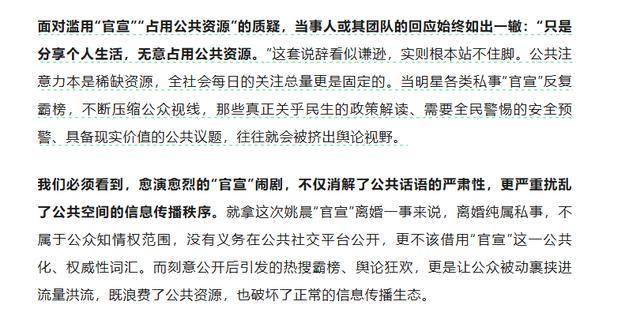 离婚纯属私事,不属于公众知情权范围,姚晨没有义务在公共社交平台公开,更不该用“官宣”这一词汇。