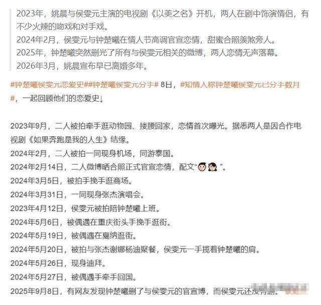 甚至有网友晒出两人同框出行的模糊照片,爆料称姚晨为了逼侯雯元与钟楚曦分手,不惜动用资源施压。