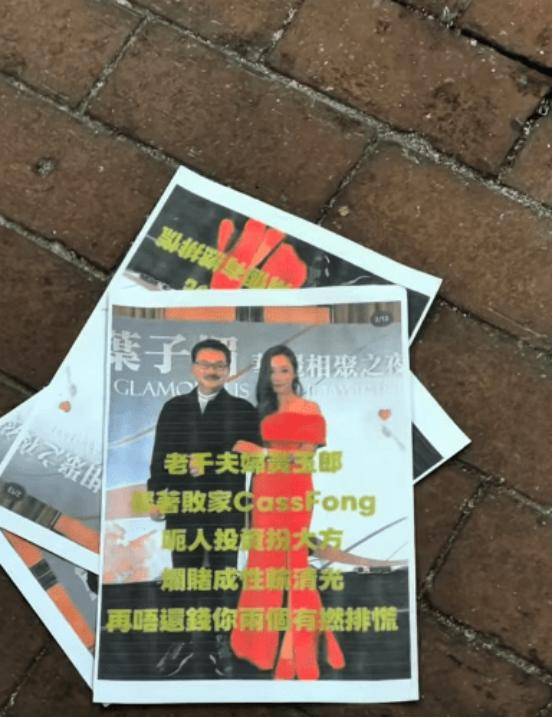 近日有网民在其社交网上,上传了多段视频,视频中在铜锣湾时代广场,黄玉郎与他妻子Cass Fong,被追债的传单满天飞,令不少路过的行人驻足观看。