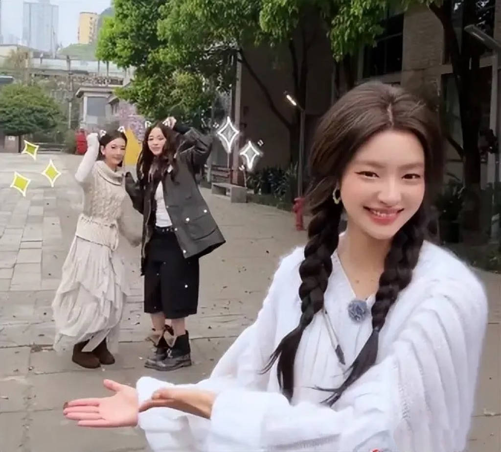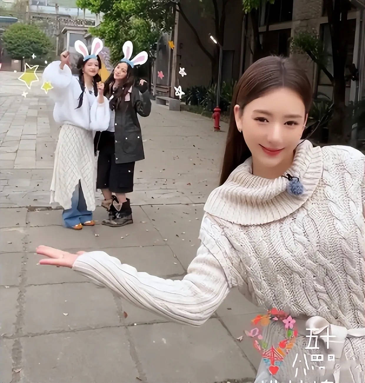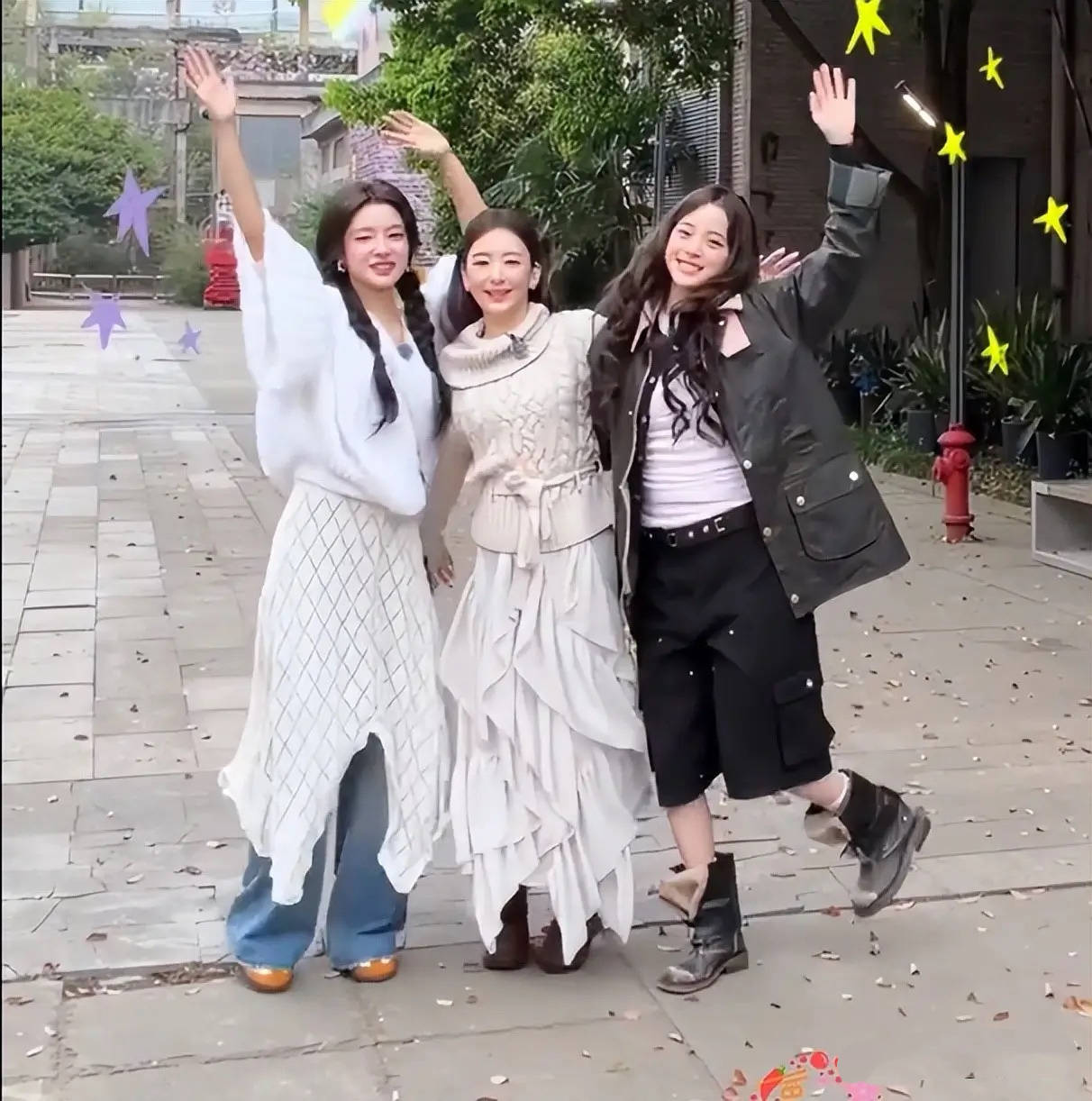 徐若晗28岁、欧阳娜娜25岁,而方媛已经38岁了,还生了3个娃。她们在一起就像姐妹一样,完全没有容貌上的差距。