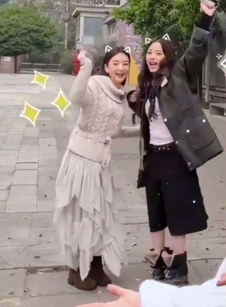 欧阳娜娜穿着黑色皮质外套、搭配了过膝裙,她的打扮一如既往地飒美。方媛和欧阳娜娜、徐若晗之间没有隔阂,甚至她们一见如故玩得很开心。