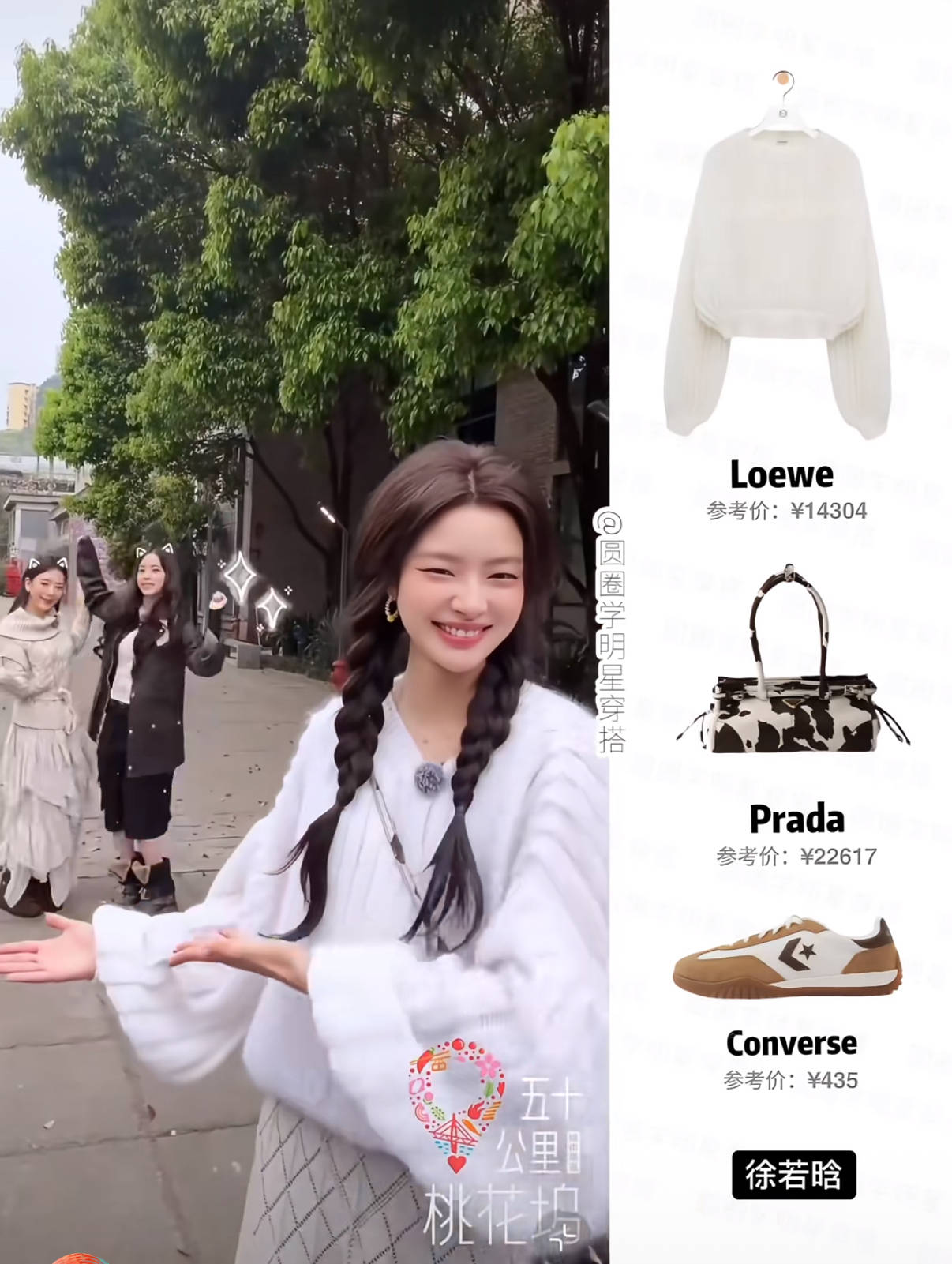 徐若晗年龄小,更喜欢漂亮衣服,她的穿搭就会更加洋气、价格也高一些。上万元的白色上衣、普拉达的包包,一身行头怎么也要几万块!