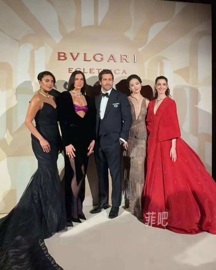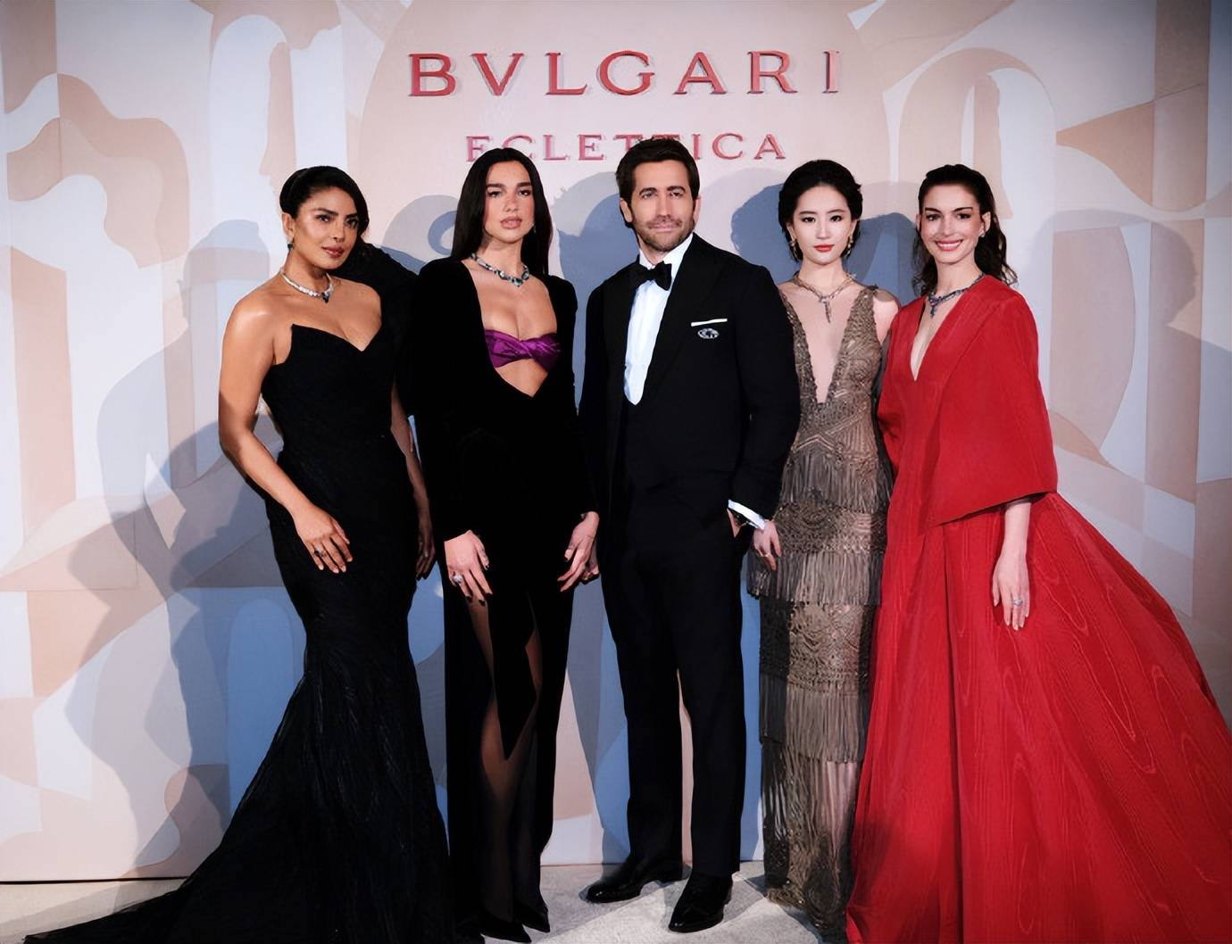 就在同一天,远在意大利米兰的宝格丽高级珠宝展上,刘亦菲与影片绝对女主安妮·海瑟薇并肩亮相。这可不是普通的礼节性同台——现场镜头捕捉到两人多次亲密搂腰、低头热聊,笑容灿烂,互动状态远超一般明星在时尚活动上的社交距离。这番“搂腰杀”迅速被眼尖的媒体和网友解读为“因戏结缘”的铁证:要是没点深度合作,哪来这么熟的闺蜜感?
