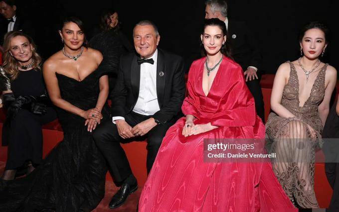 座位安排上几乎每一年都是与安妮海瑟薇邻座,一旁便是CEO,待遇一直不错。