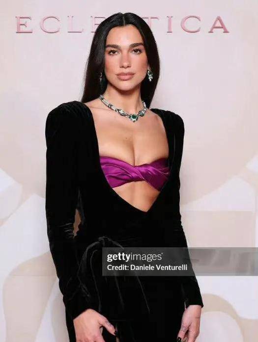 Dua Lipa是绝对的性感尤物,身材和脸都很符合西方审美,她选择的颜色都是很纯色单一的色调,三者搭在一起有种另类的美。