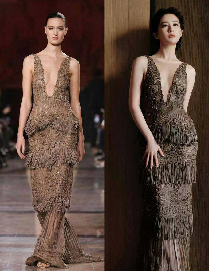 穿着Elie Saab 2026春夏之交的高定、流苏和深V,持续得比模还漂亮。