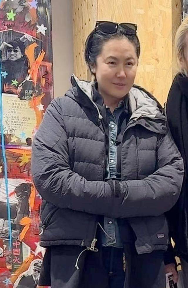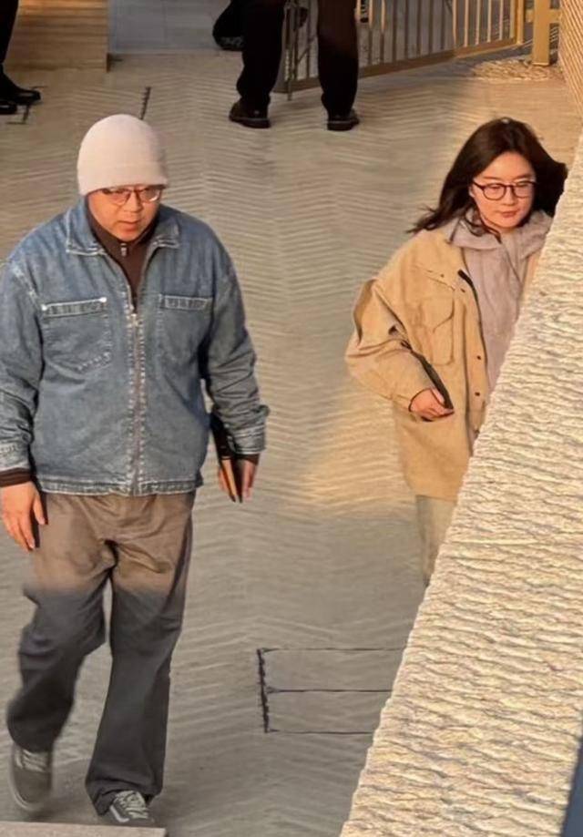 女子露出侧脸,外表不年轻了,但应该比窦唯小一些,皮肤白皙,戴着眼镜,一身黑色打扮,与窦唯一样休闲。