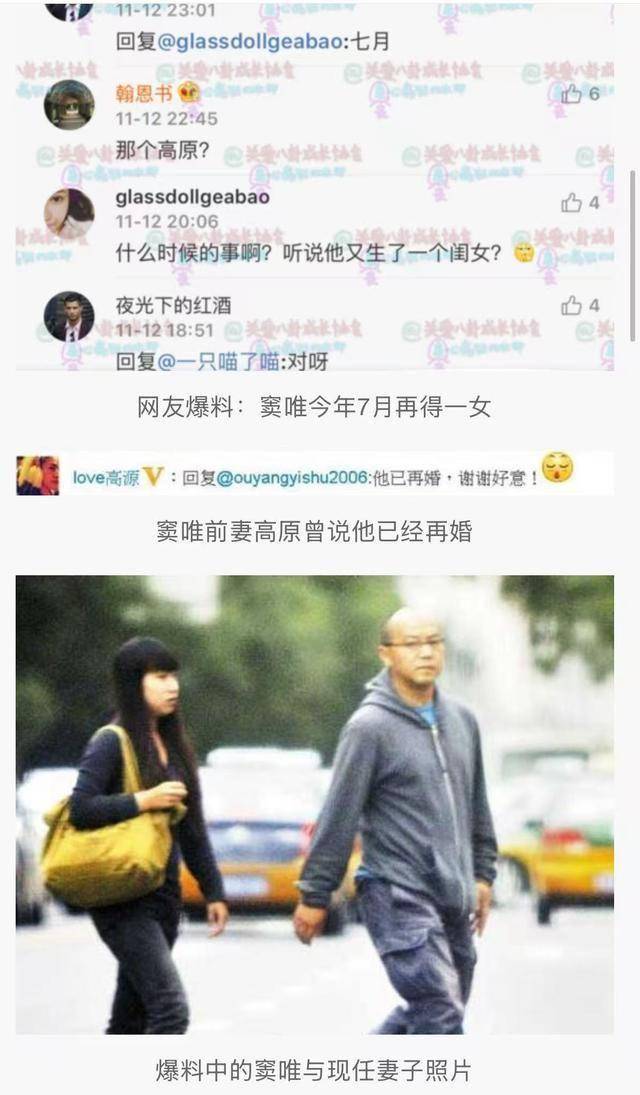 窦唯有过两段出名的婚姻,一段是王菲,另一段是高原,两位前任都给窦唯生了女儿。