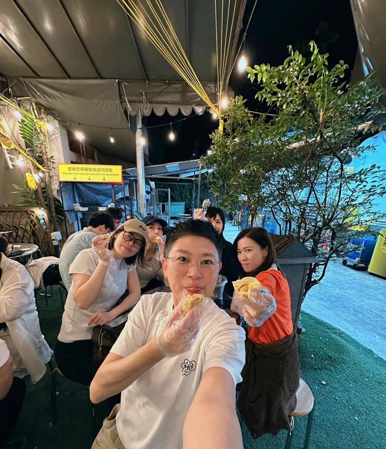 她好像完全没在意。转头就在社交账号上晒出了美食。经纪人订了当地一家很难排队的餐厅。她心心念念的螃蟹,用两种做法上桌:蟹汤米粉和黑胡椒蟹。她尤其喜欢那个蟹汤米粉,双手举起那只巨无霸螃蟹,蟹壳比她的脸还大。另一道让她赞不绝口的是胡椒猪肚汤,她说那是她喝过最好喝的。饭后,为了满足同行助理的喜好,他们还专门去吃了榴莲,实现“榴莲自由”。照片里每个人捧着一块金黄果肉,笑得开心。