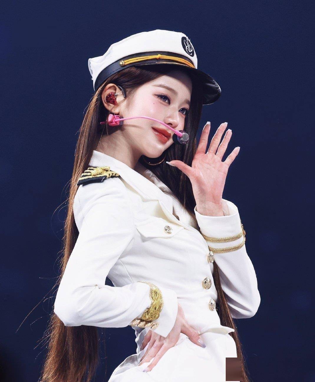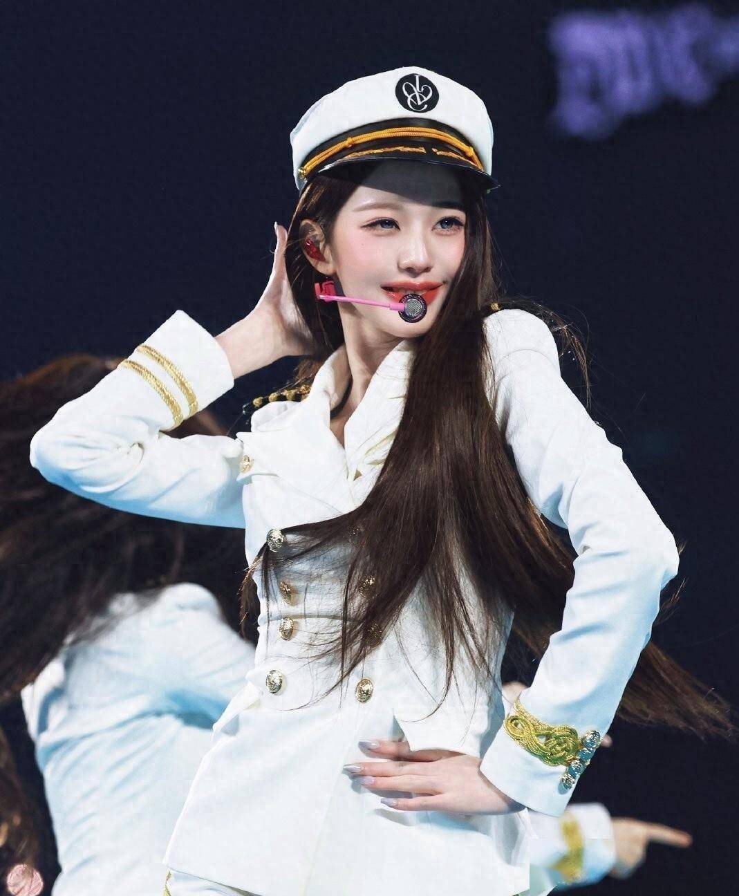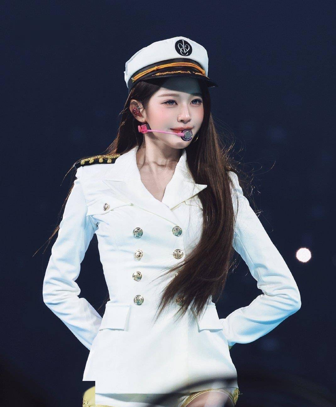 舞台上的张元英跳的是少女时代的经典曲目《Genie》。歌是2009年的,造型却复刻了当年的水手服风格。蓝白的配色,肩章,金色的穗带,这些细节在舞台灯光下很清晰。