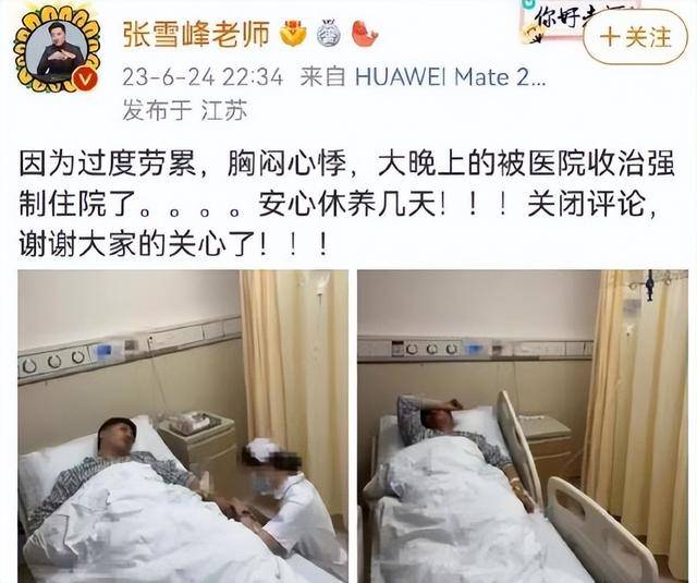 张雪峰此前就因为心胸发闷住进过医院,再加上他整个人属于工作强度特别大。尤其这两年,大家发现没有?
