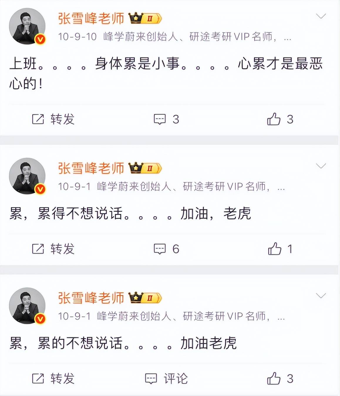 当年,张雪峰还曾在凌晨3点发博感慨,自己好不容易才能睡4个小时,可见很多时候他的睡眠都无法保障。