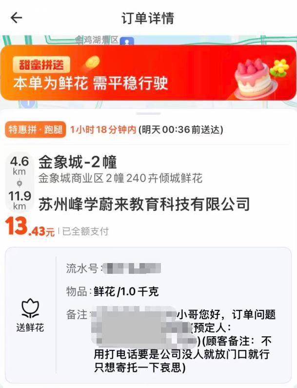 另外,有不少网友买了鲜花去祭奠张雪峰,看了顾客的备注,也是让人心痛不已。