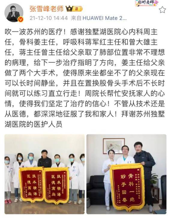 从网上流出的爆料来看,张雪峰在出事之后,被就近送往独墅湖医院,医院也对他进行全力救治,周院长也特意赶来亲自督阵。