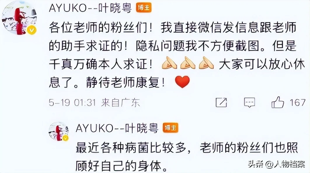 就在大家忧心忡忡、四处求证的时候,最先站出来辟谣的是叶晓粤。