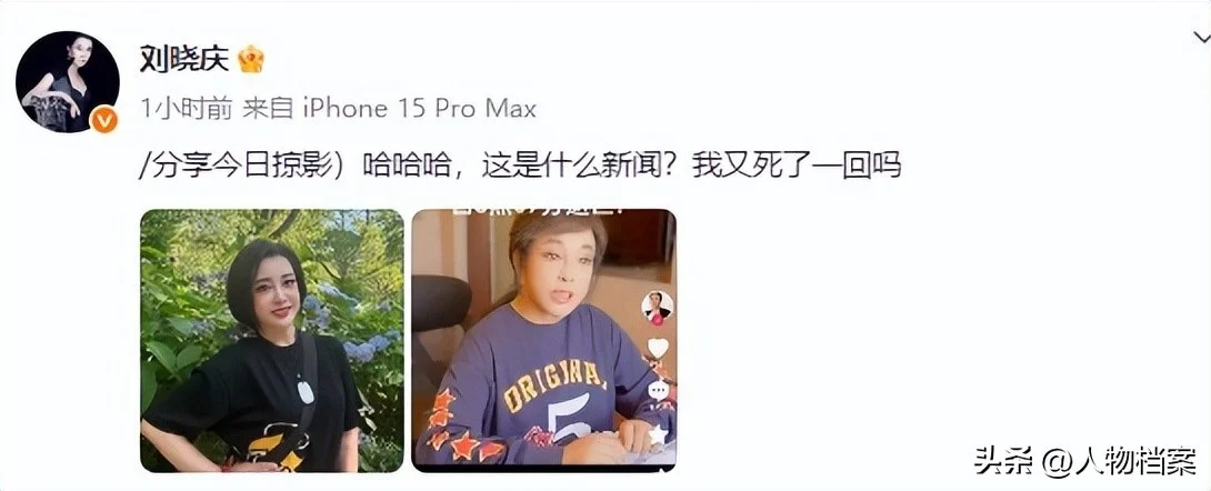 她还附上造谣截图,配文调侃“哈哈哈,这是什么新闻?我又死了一回吗?”