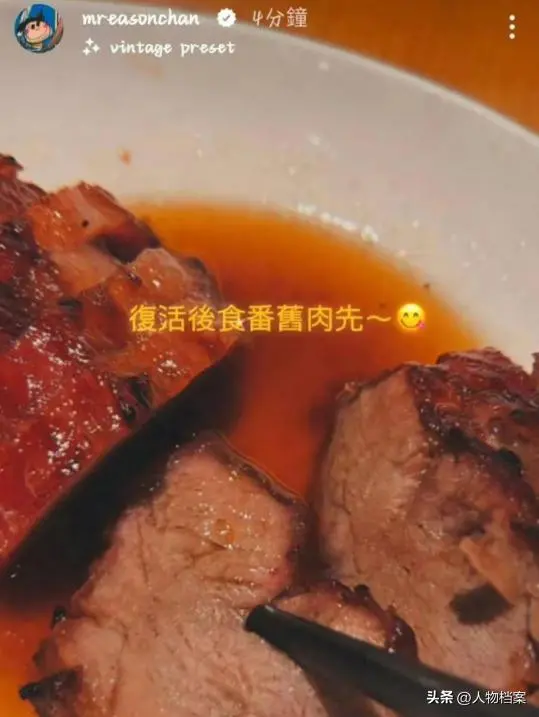 他晒出日常随拍,配文用粤语调侃“复活后食番旧肉先”,语气轻松又接地气。