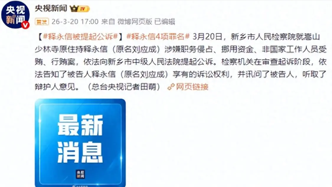 最近最火的新闻,莫过于释永信被提起公诉。