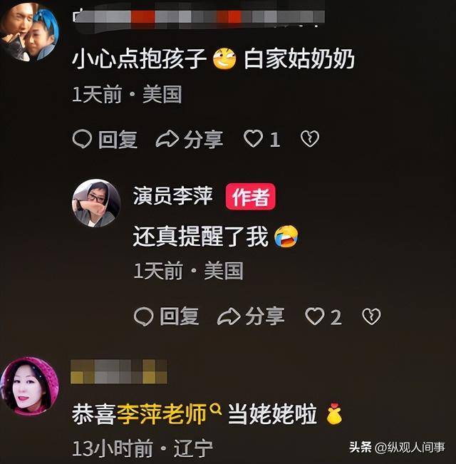 李萍官宣当姥姥的消息一出,评论区瞬间被网友的祝福刷屏。有人说荧幕上的妈妈终于在现实里收获了满满的幸福。