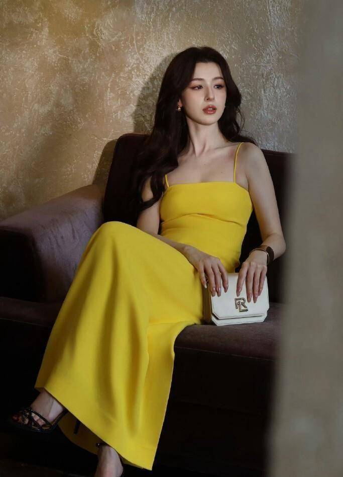 异域长相是她的优势,高鼻梁,深眼窝,辨识度强。黄色裙子衬得她像一束阳光,站在哪里都是焦点。