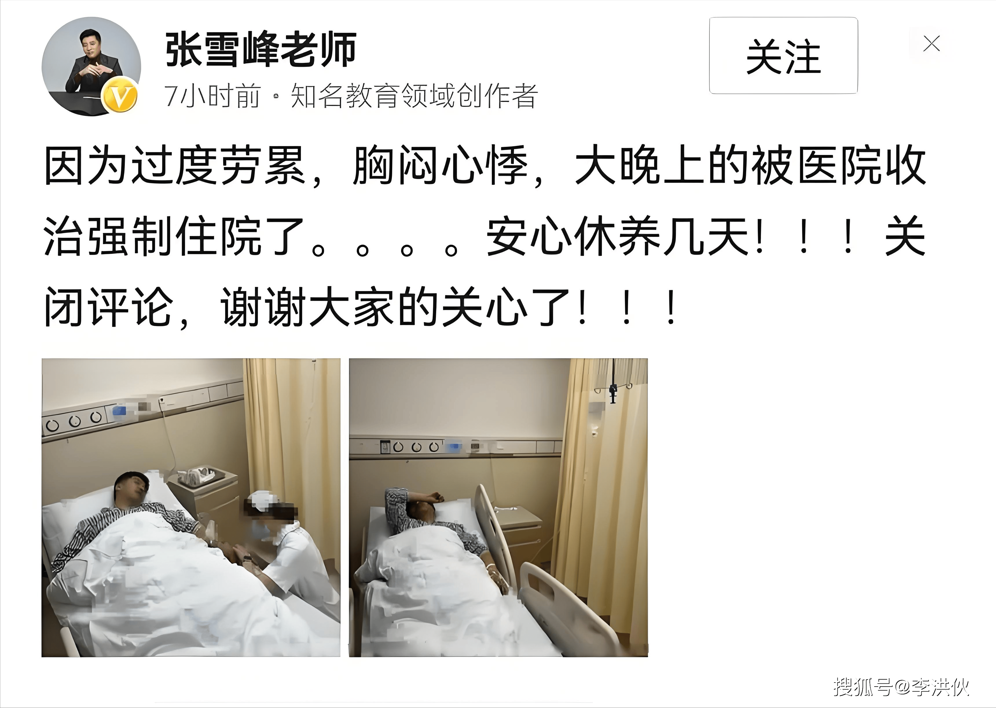 其实在3年前,张雪峰就因为心悸住院,当医生强制他休息的时候,他还调侃自己出院了仍是一条好汉。