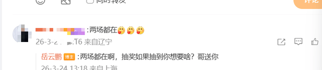 岳云鹏2026也有了新的升级,官宣的时候就直言全部拉满,2025年的时候还都是单场开,今年在上海开场,而且连开两场。不过,岳云鹏被评论区粉丝的一句话整破防了,粉丝直呼自己两场都在。岳云鹏则霸气回应称:两场都在啊,抽奖如果抽到你想要啥?哥送你。看得出岳云鹏对于喜欢自己唱歌的粉丝很是在意了,如此大方。