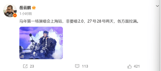 3月24日,岳云鹏2026年“不务正业”再次开启,本尊在个人社交平台官宣马年第一场演唱会。岳云鹏发文称:马年第一场演唱会上海站,非要唱2.0,27号28号两天,各方面拉满。其
