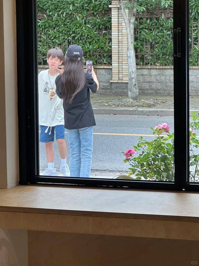 再看嗯哼,今年12岁的他,身高猛蹿,已经快逼近甜馨的肩头,少年感十足。