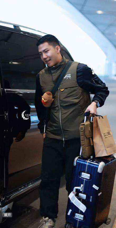 没有半点18岁少年常见的浮躁和迷茫。他穿着一件军绿色的马甲,里面搭配深色内搭,下身是黑色休闲裤,整体穿搭简单又干练。
